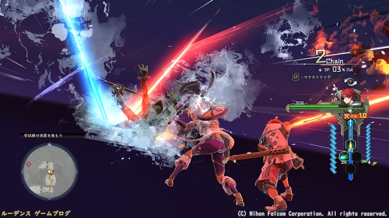まず最大の変化点は、これまで続いていた「3人パーティ&属性相性」が廃止され、アドルとカージャの二人を同時に操作する「クロスアクション」になったことです。