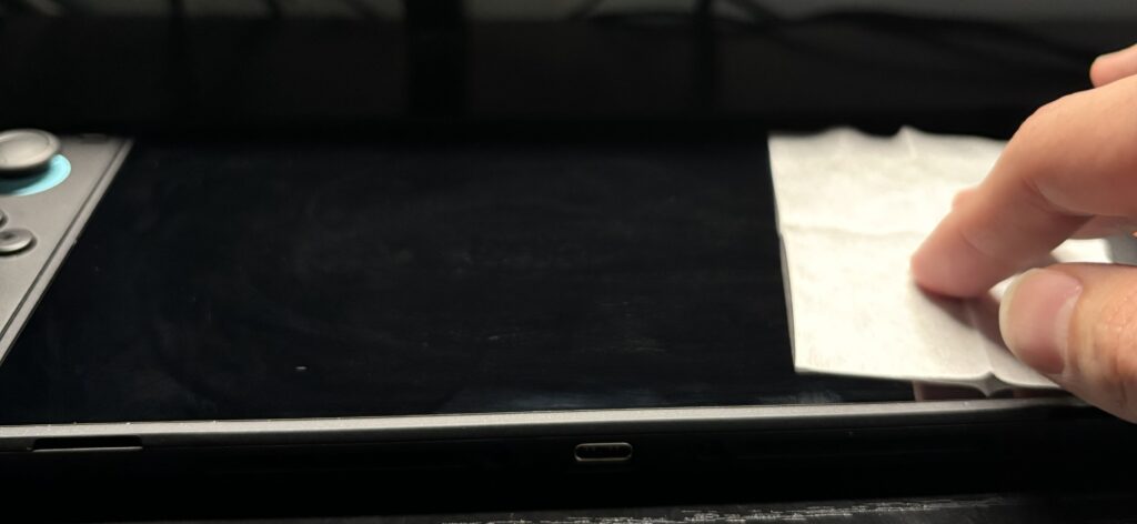 - ウエットティッシュで指紋や油分をしっかり落とす