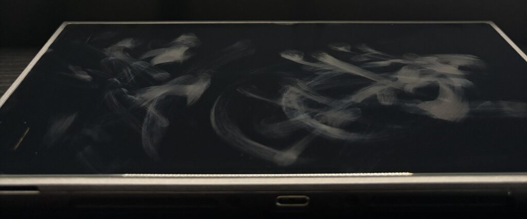 写真だと少し分かりづらいかもしれませんが、格安品は一発で指紋が残り、拭いてもなかなか取れません。対してTORRASは、「完全に残らないわけではないが、明らかに目立ちにくい」という結果になりました。