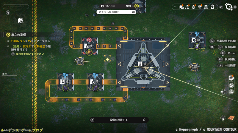 - フィールドでの採集: 自分で集めるだけでなく、採掘機を設置して自動化します。