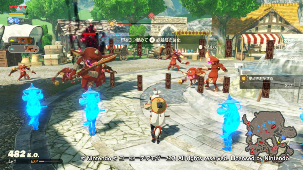 Yボタンで弱攻撃、Xボタンで強攻撃、Bボタンで回避というシンプルな操作で、ワラワラと湧いてくる敵をド派手な技で吹き飛ばす「一騎当千」のアクションは格別の楽しさは健在です。